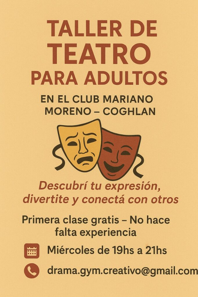 Los invitamos a todos a participar de clases de teatro para adultos en el club, el taller funcionará durante el verano y la primera clase es gratuita.